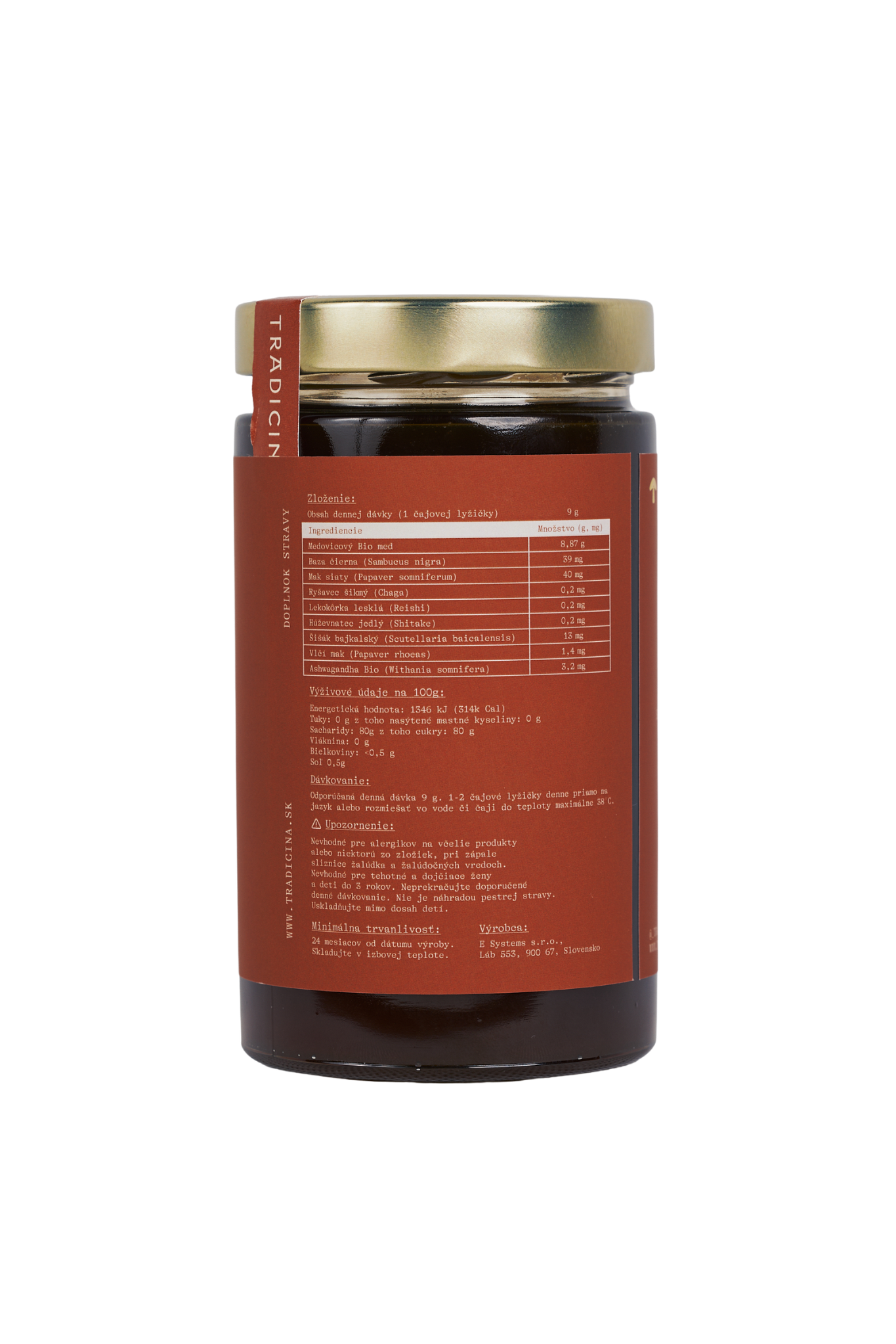 - Slovenský medovicový BIO RAW med – prírodná zložka, ktorá slúži ako nosič účinných látok a dodáva produktu jemnú chuť. Pomáha zachovávať kvalitu rastlinných extraktov.